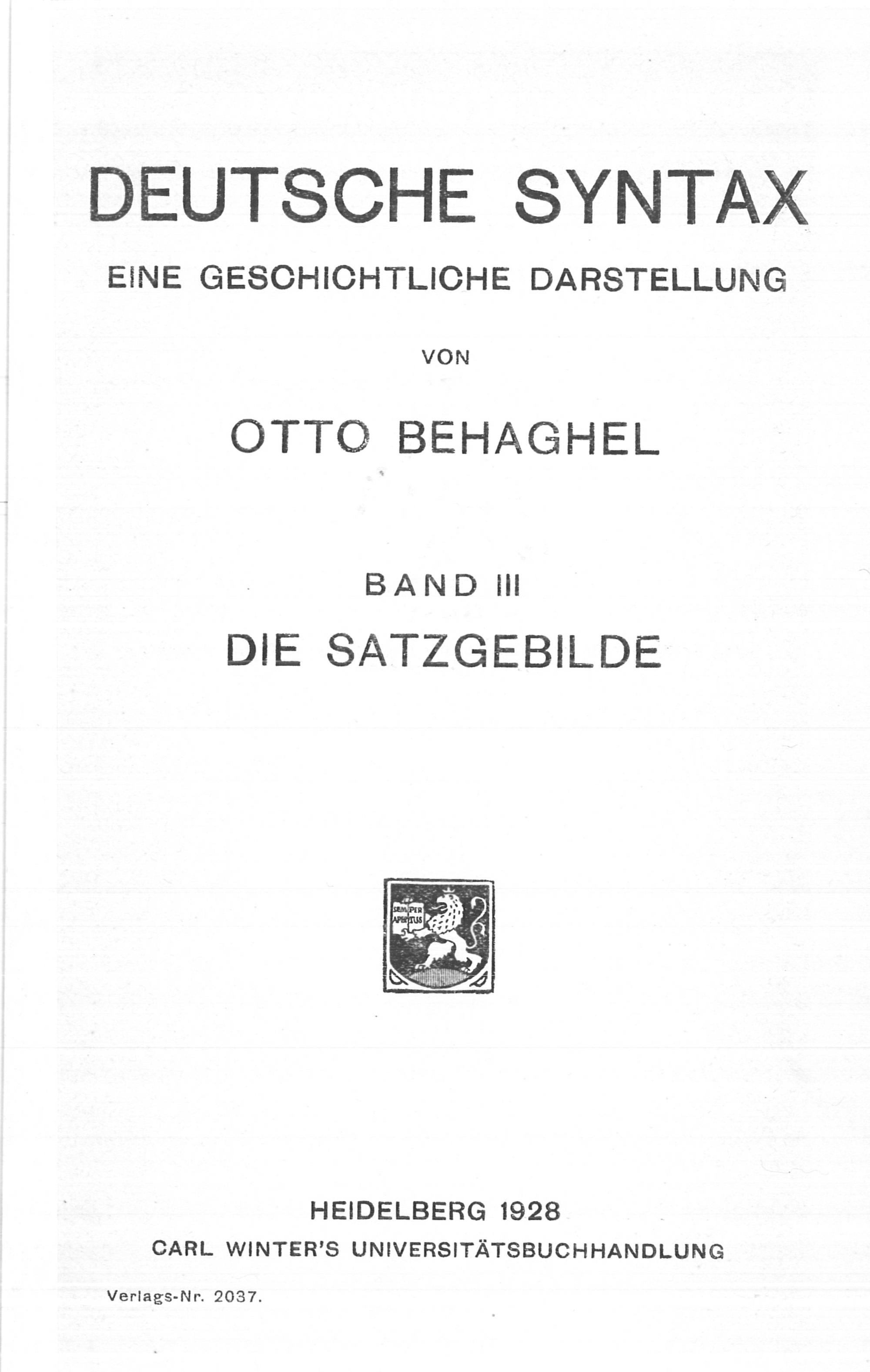 3 (1928) Die Satzgebilde / Otto Behaghel