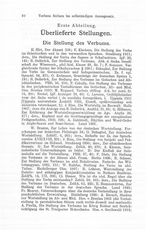 Erste Abteilung: Überlieferte Stellungen
