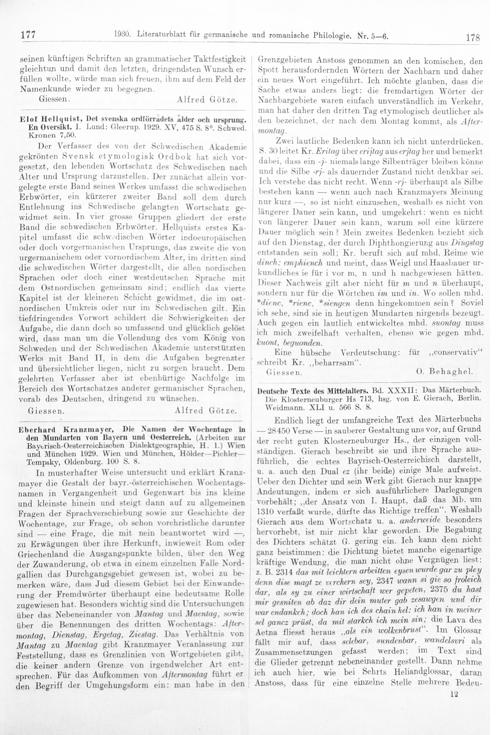 Kranzmayer, Die Namen der Wochentage in den Mundarten von Bayern und Österreich