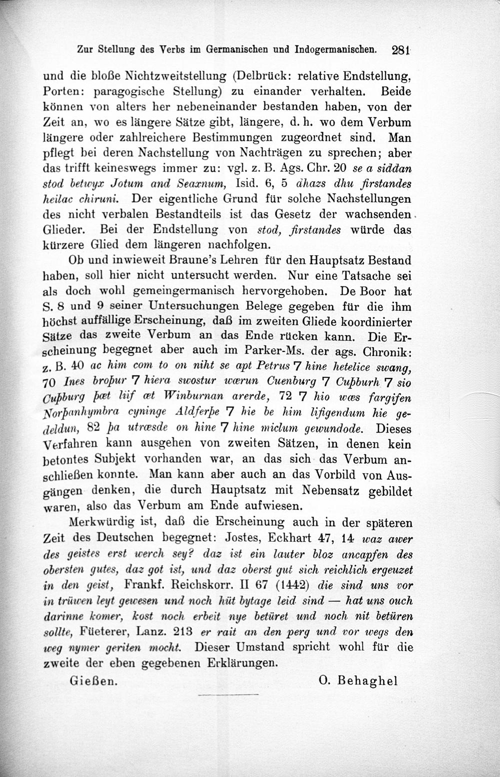 Zur Stellung des Verbs im Germanischen und Indogermanischen