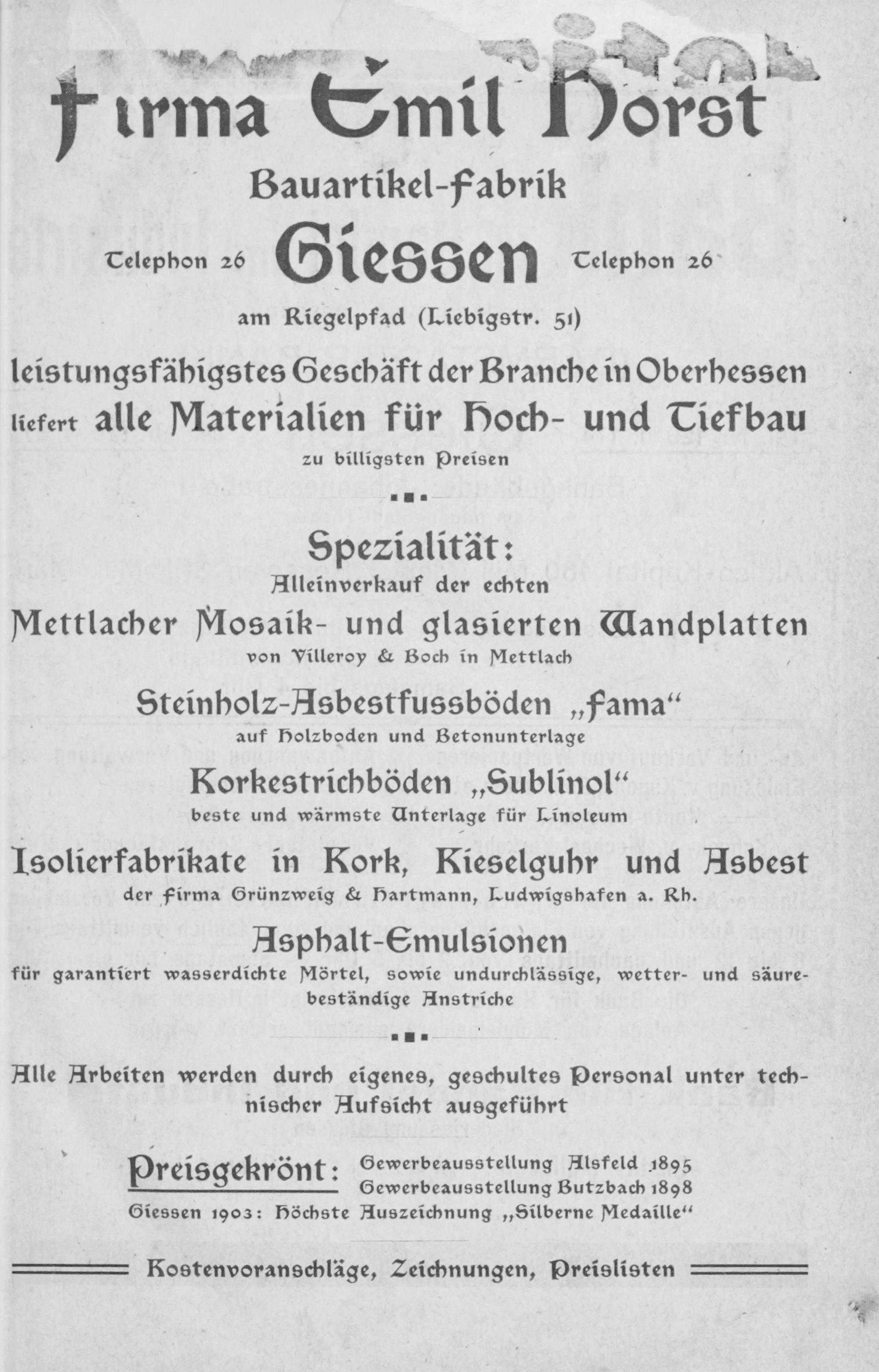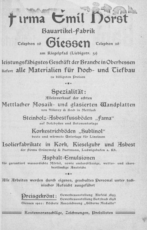 Giessen 1903: Höchste Huszeichnung„Silberne Medaille“