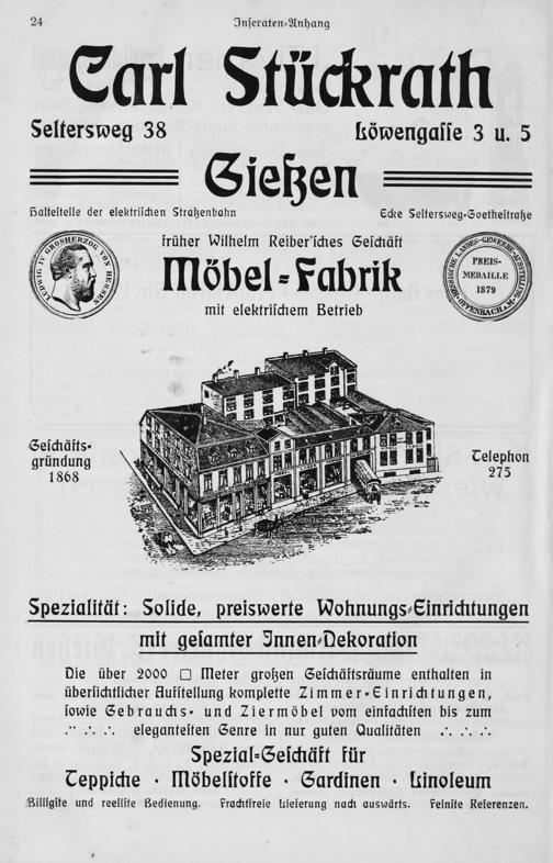 Die über 2000 O Illeter großen Seschäftsräume enthalten in übersichtlicher Hufstellung komplette Zimmer-Sinrichtungen, sowoie Sebrauchs- und Ziermöbel vom einfackhten bis zum