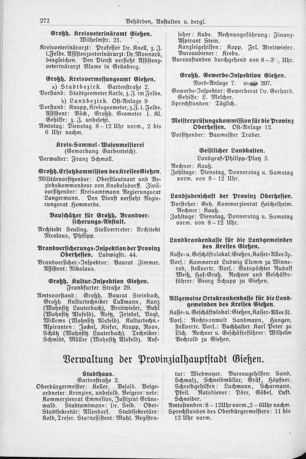 Verwaltung der Provinzialhauptstadt Gießen.