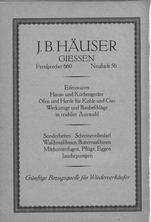 Sonderheiten: Schreinereibedarf Waschmaschinen, Buttermalchinen Milchꝛentrifugen, Pflüge, Eggen