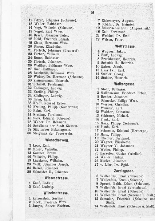 II. Alphabetisches Verzeichnis der Bewohner
