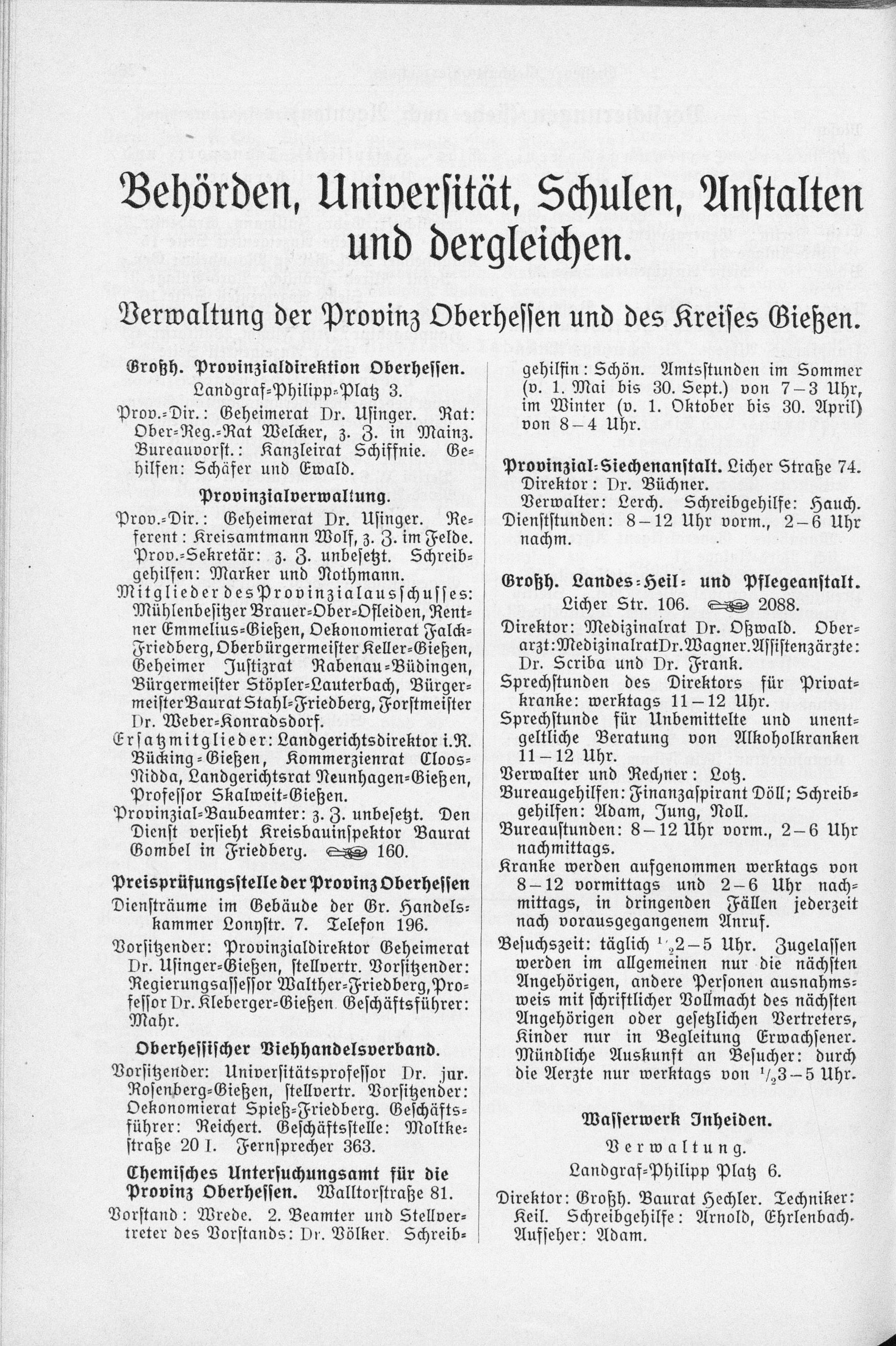 Behörden, Universität, Schulen, Anstalten und dergleichen