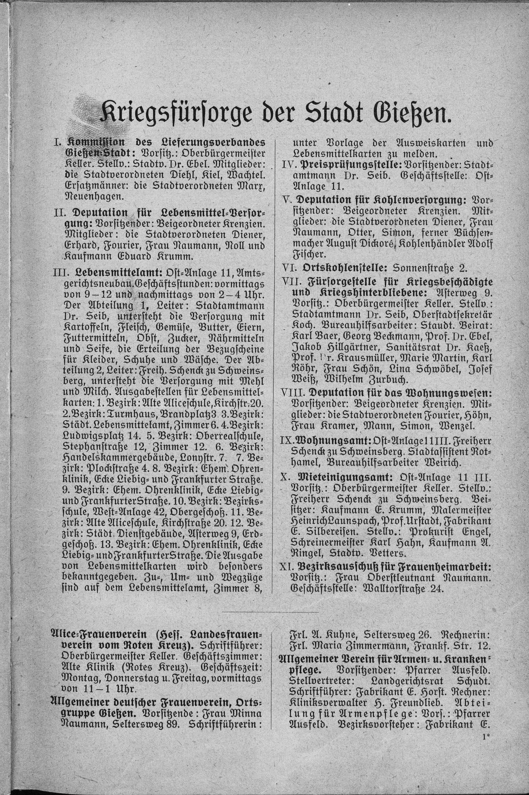 Kriegsfürsorge der Stadt Gießen