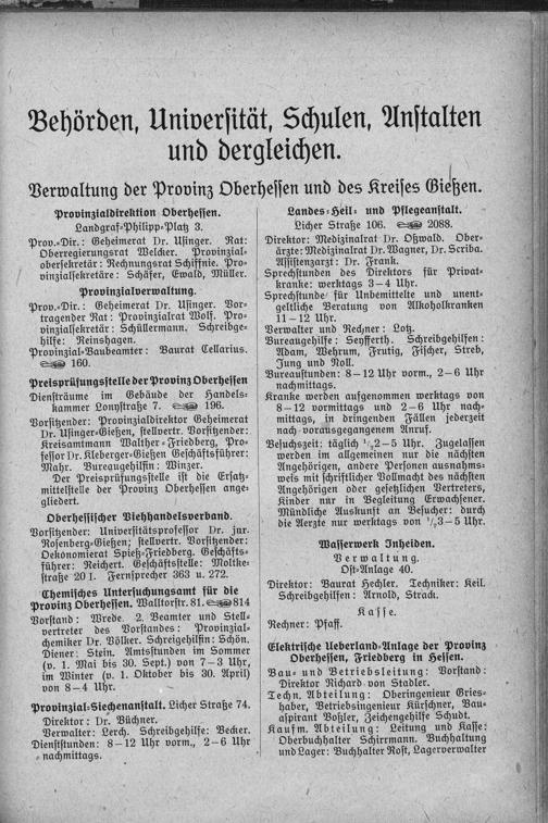 Behörden, Universität, Schulen, Anstalten und dergleichen