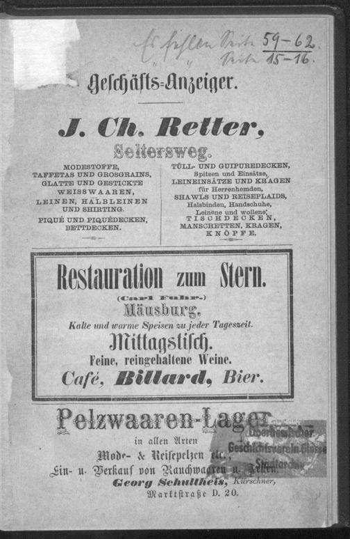 Adreß- und Geschäftshand-Buch für die Provinzial-, Haupt- und Universitätsstadt Gießen für ...