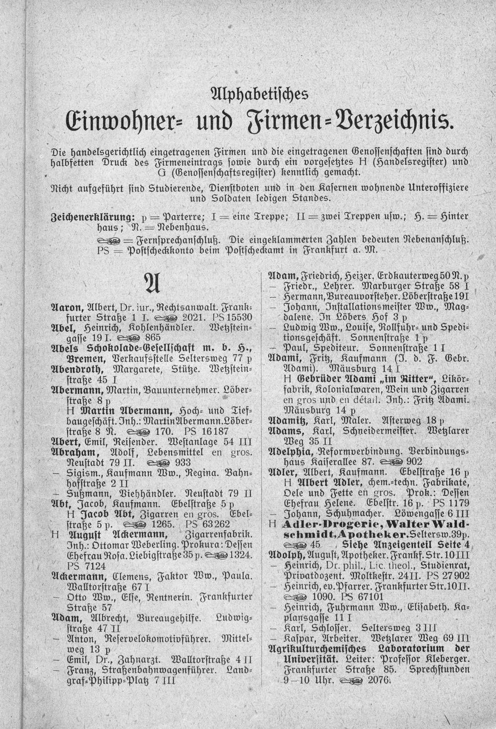 Alphabetisches Einwohner- und Firmen-Verzeichnis