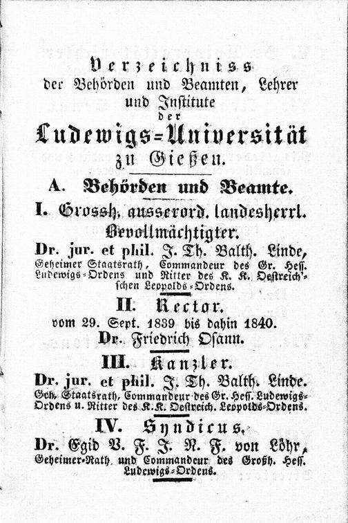 Verzeichniss der Behörden und Beamten, Lehrer und Institute der Ludewigs-Universität zu Gießen