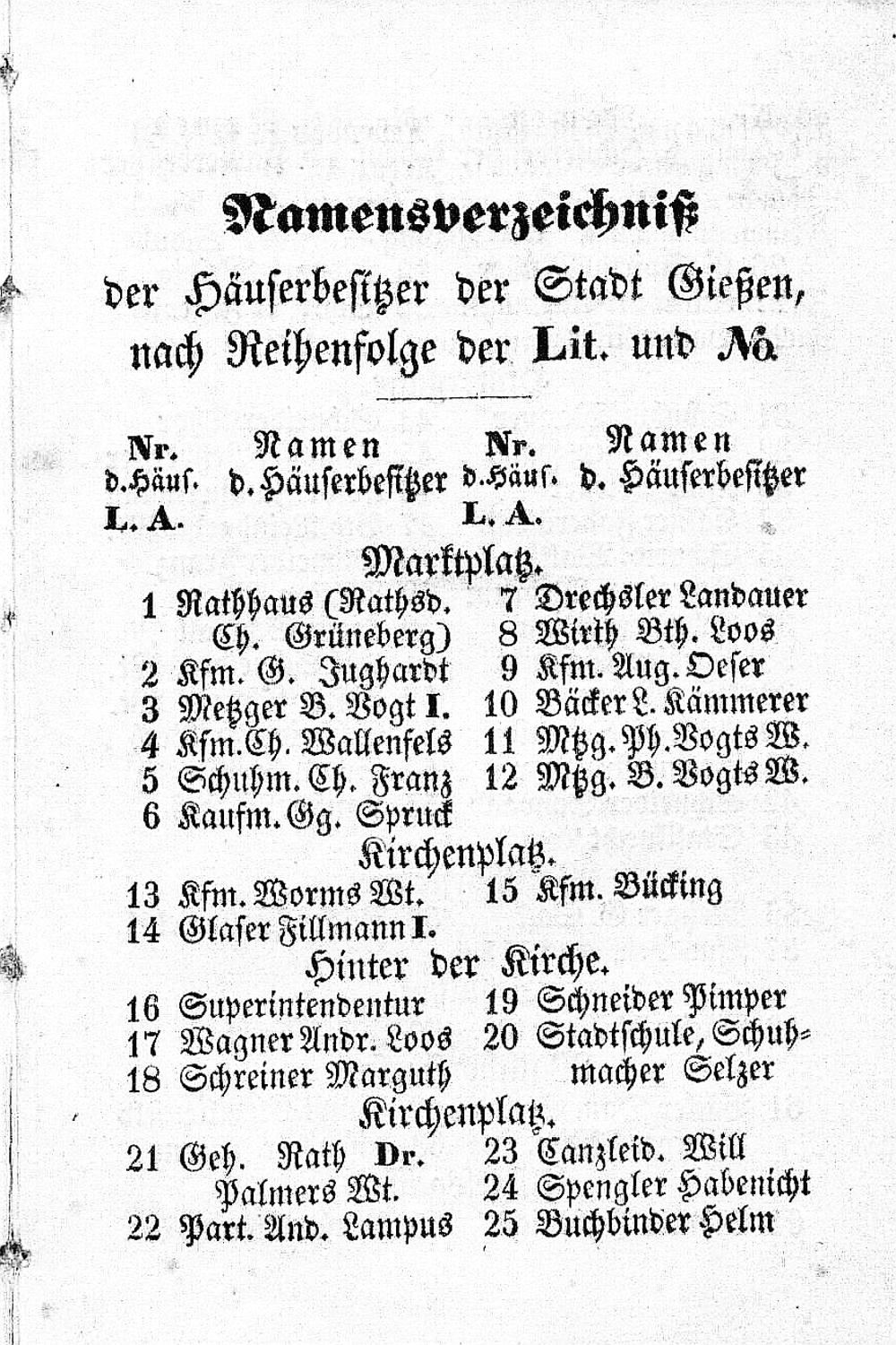 Namensverzeichnis der Häuserbesitzer der Stadt Gießen