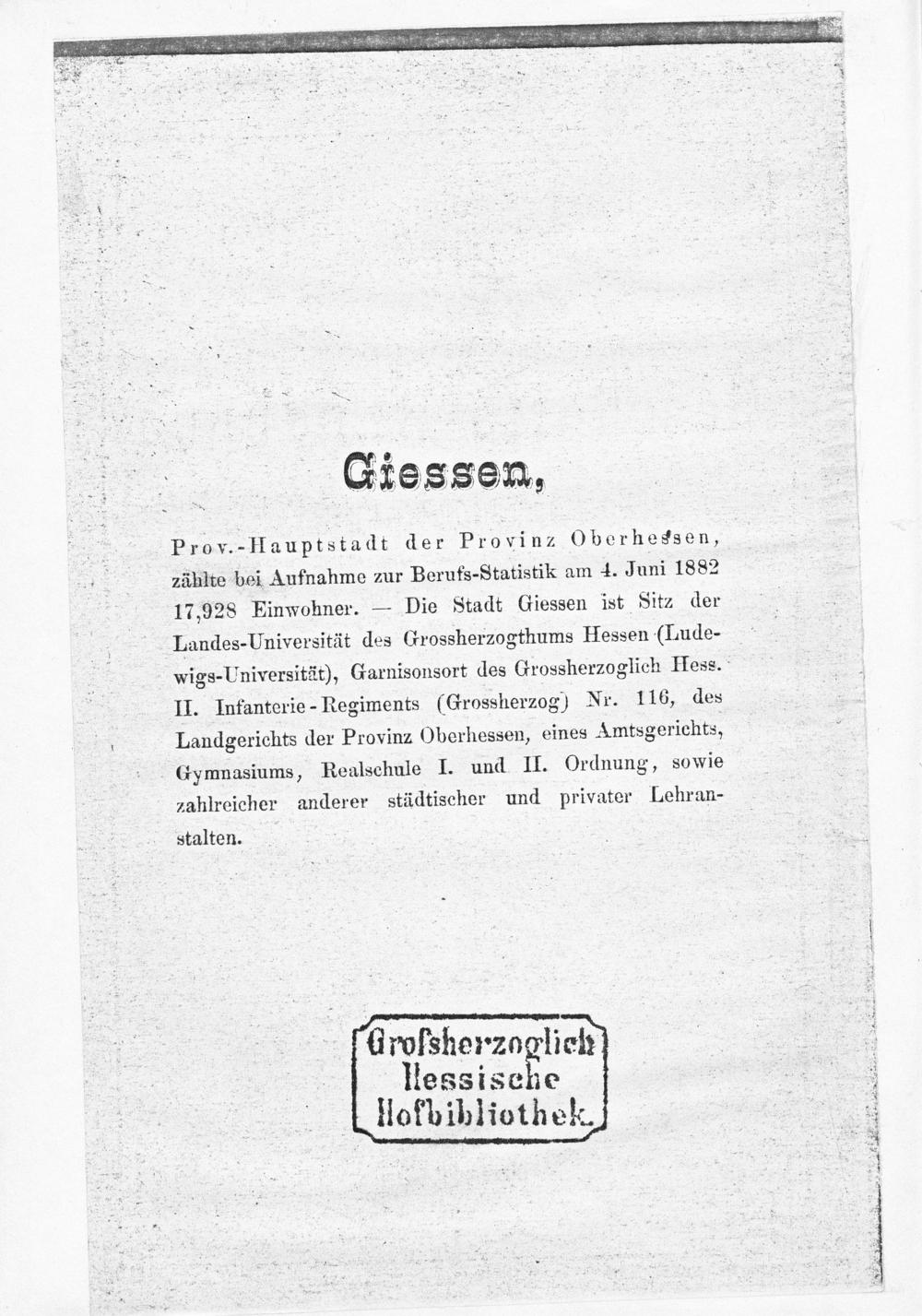 IV. Civil-, geistliche und Militär-Behörden der Stadt Giessen