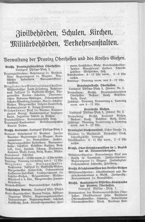 Zivilbehörden, Schulen, Kirchen, Militärbehörden, Verkehrsanstalten