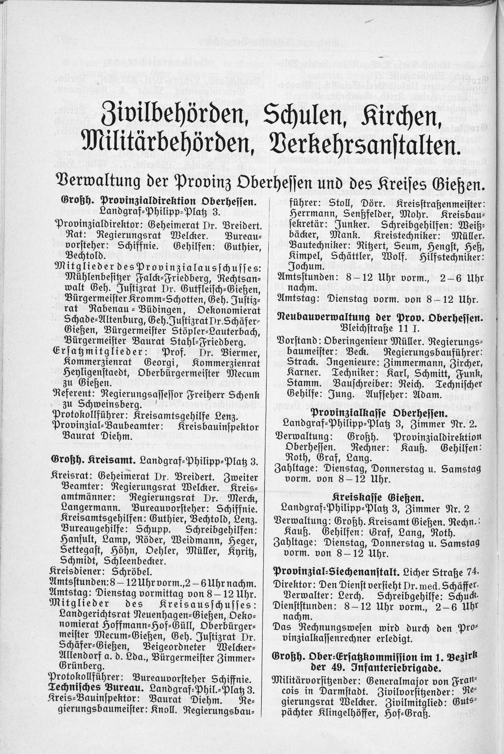 Zivilbehörden, Schulen, Kirchen, Militärbehörden, Verkehrsanstalten