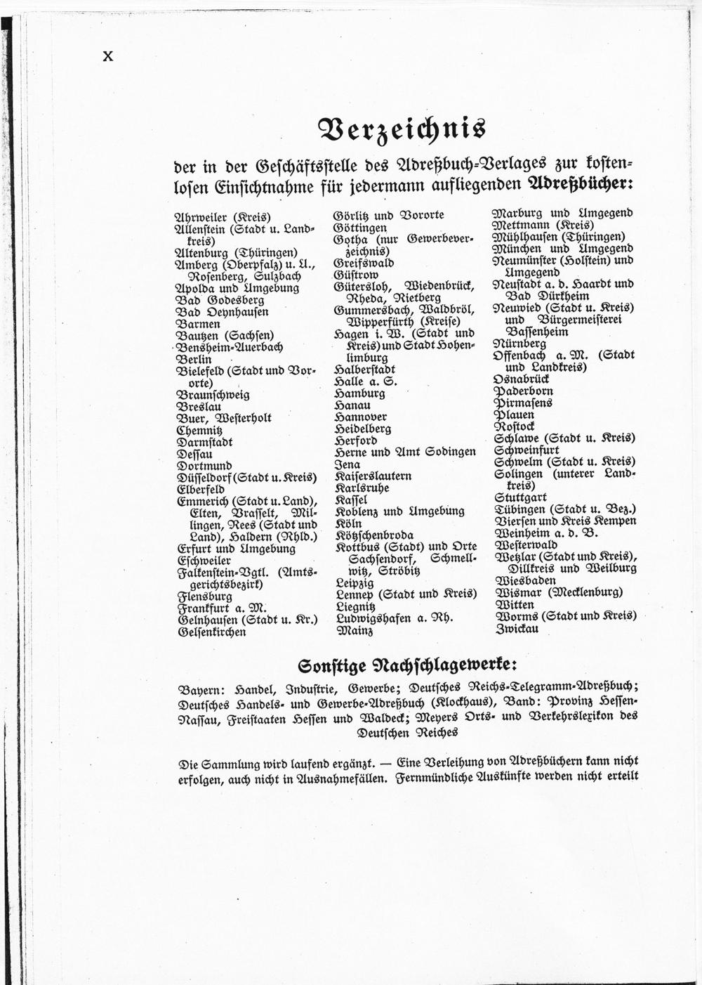 Verzeichnis der in der Geschäftsstelle des Oberhessischen Adreßbuchverlages zur kostenlosen Einsichtnahme für jedermann aufliegenden Adreßbücher