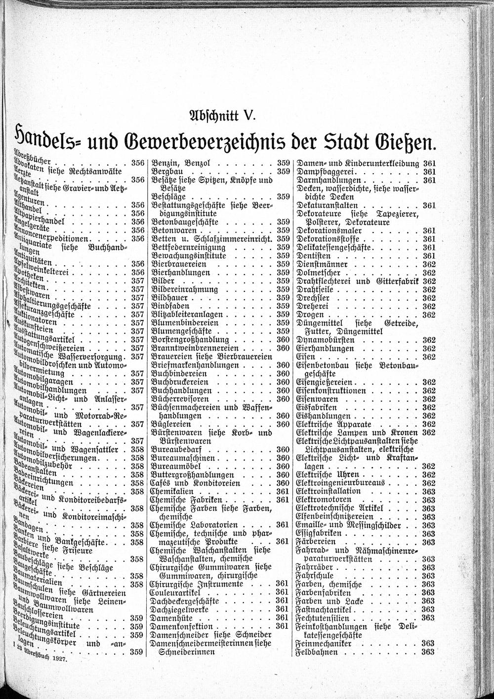 Abschnitt V - Handels⸗ und Gewerbeverzeichnis der Stadt Gießen.