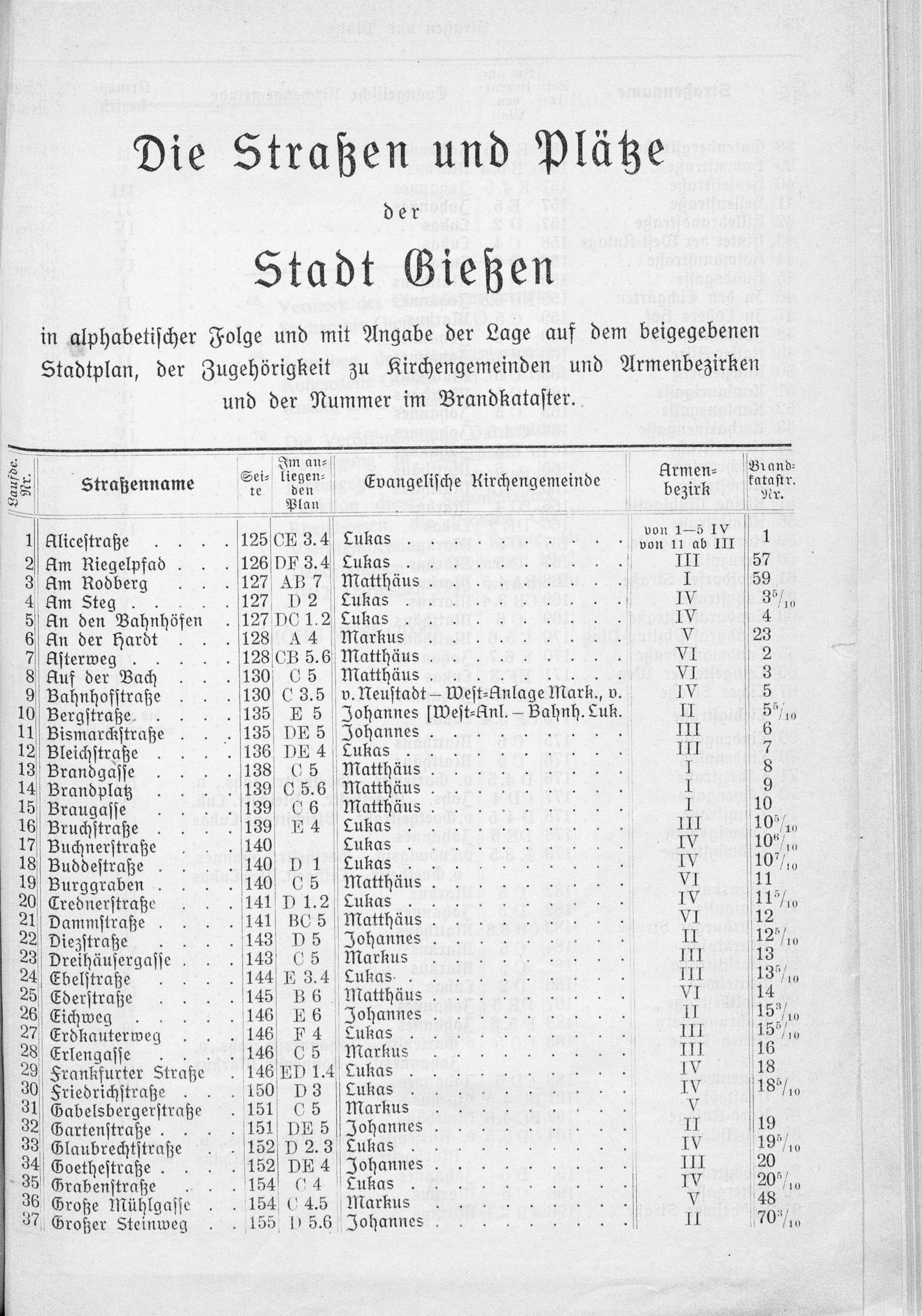 Die Straßen und Plätze der Stadt Gießen