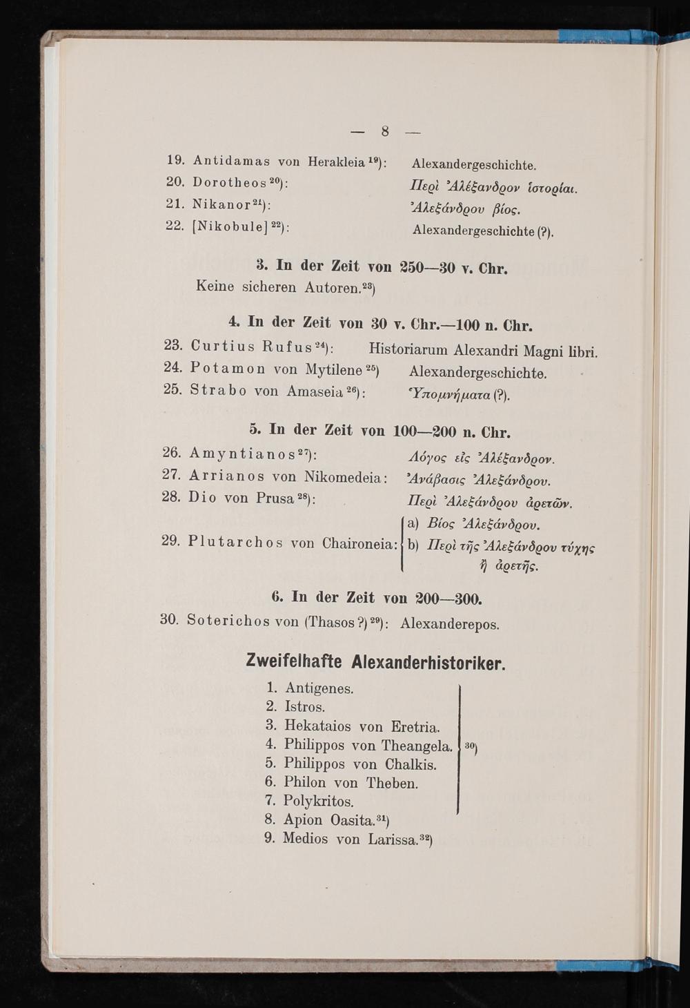 Hekataios von Eretria. Philippos von Theangela. ³0) Philippos von Chalkis. Philon von Theben. Polykritos.