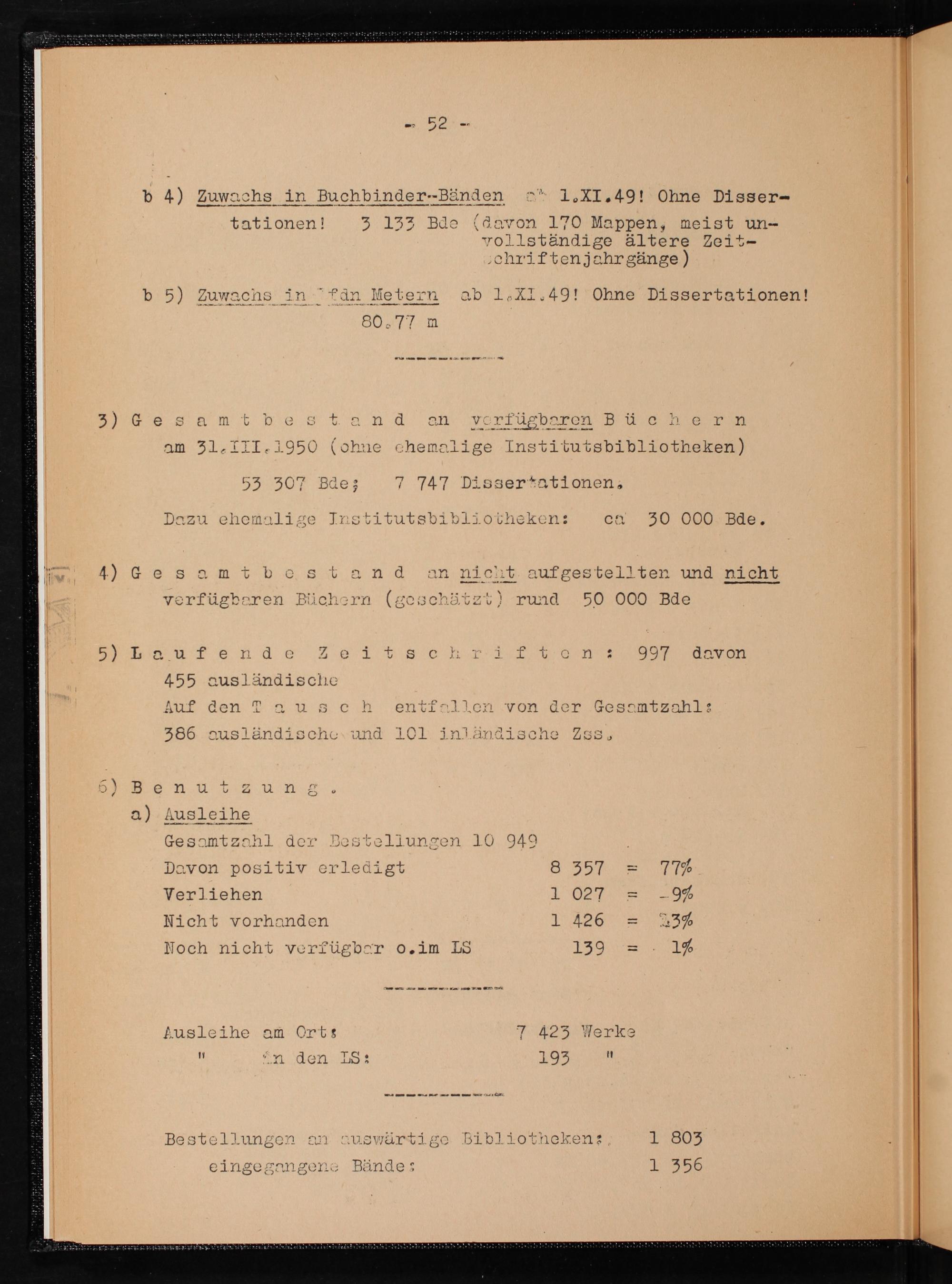 b 4) Zuwachs in Buchbinder--Bänden 1.XTI. 49! Olne MHsser-