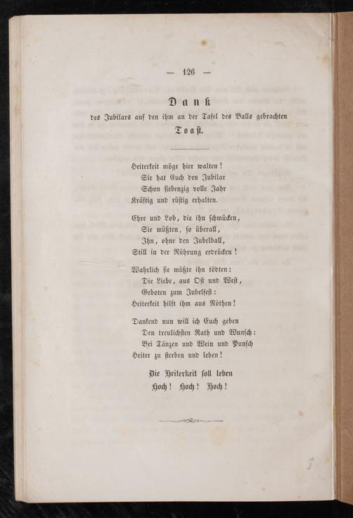 des Jubilars auf den ihm an der Tafel des Balls gebrachten Toaſt.