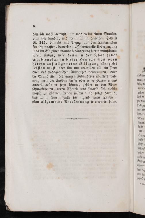 daß ich wohl gewußt, um was es bei einem Studien⸗ plan ſich handle; und wenn ich in derſelben Schrift S. 245, damals mit Bezug auf den Studienplan für Gymnaſien, bemerkte:„Individuelle Ueberzeugung mag im Einzelnen manche Abänderung hierin wünſchens⸗ werth finden; wie denn in der That jeder Studienplan in dieſer Hinſicht von vorn herein auf allgemeine Billigung Verzicht leiſten muß; aber ihn um deswillen als ein Pro— duct des pädagogiſchen Aberwitzes verdammen, oder die Grundfeſten des ganzen Gebäudes erſchüttert wäh⸗ nen, weil der Ausbau dieſer oder jener Partie etwas anders geſtaltet ſeyn könnte, gehört zu den Abge⸗ ſchmacktheiten, deren Theorie und Praxis ſich gleich⸗ mäßig zu ſchämen lernen ſollten,“ ſo folgt daraus, daß ich in keinem Falle für irgend einen Studien— plan allgemeine Anerkennung je erwartet habe.