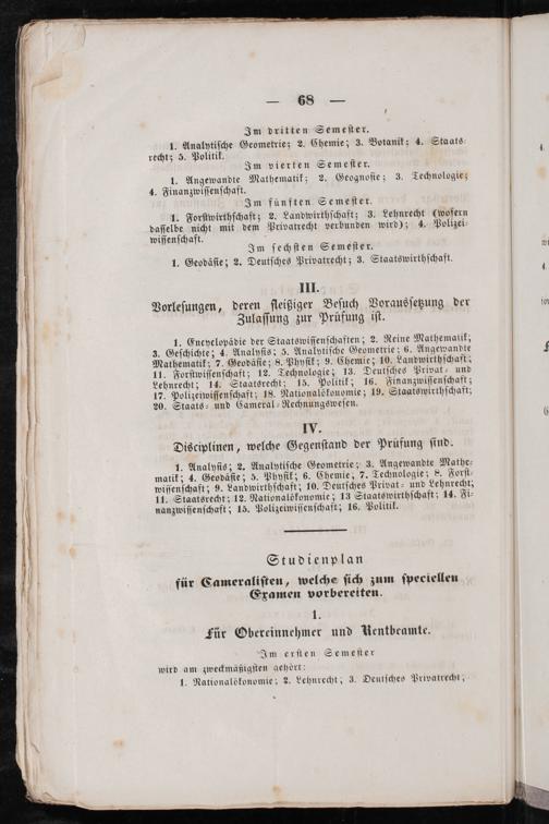 1. Encyelopädie der Staatswiſſenſchaften; 2. Reine Mathematik; 3. Geſchichte; 4. Analyſis; 5. Analytiſche Geometrie; 6. Angewandte Mathematik; 7. Geodäſie; 8. Phyſik; 9. Chemie; 10. Landwirthſchaft; 11. Forſtwiſſenſchaft; 12. Technologie; 13. Deutſches Privat⸗ und Lehnrecht; 14. Staatsrecht; 15. Politik; 16. Finanzwiſſenſchaft; 17. Polizeiwiſſenſchaft; 18. Nationalökonomie; 19. Staatswirthſchaft; 20. Staats⸗ und Cameral⸗Rechnungsweſen.