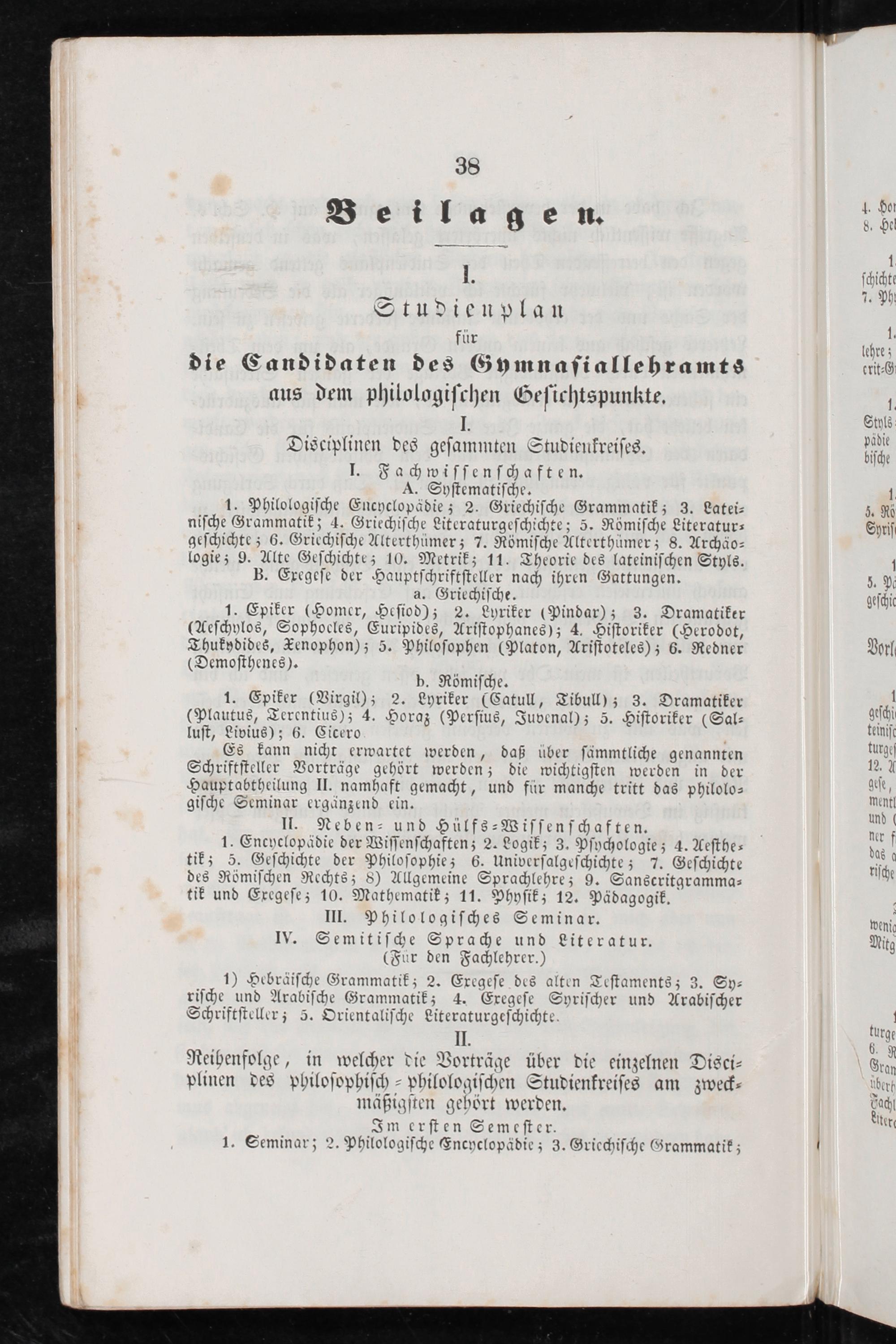 J. Studienplan für die Candidaten des Gymnaſiallehramts aus dem philologiſchen Geſichtspunkte. I. Disciplinen des geſammten Studienkreiſes. I. Fachwiſſenſchaften. A. Syſtematiſche.