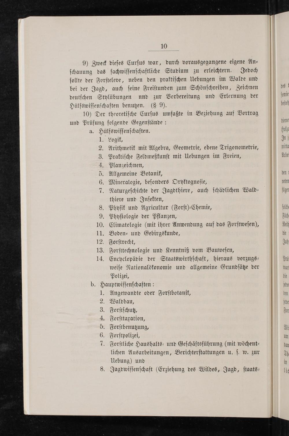 9) Zweck dieſes Curſus war, durch vorausgegangene eigene An⸗ ſchauung das fachwiſſenſchaftliche Studium zu erleichtern. Jedoch ſollte der Forſteleve, neben den praktiſchen Uebungen im Walde und bei der Jagd, auch ſeine Freiſtunden zum Schönſchreiben, Zeichnen deutſchen Stylübungen und zur Vorbereitung und Erlernung der Hülfswiſſenſchaften benutzen.(§ 9).