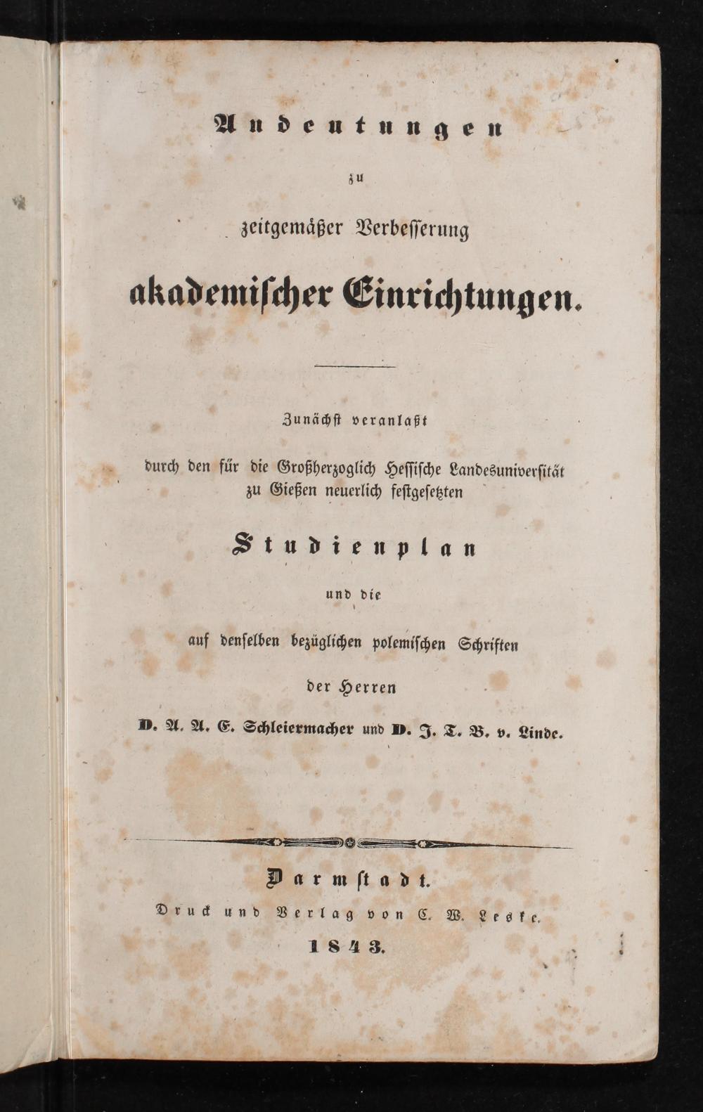 Darmſtadt. Druck und Verlag von C. W. Legke. 1843. 3.
