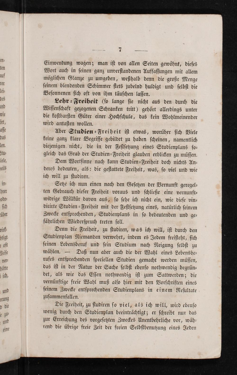 Die Freiheit, zu ſtudiren ſo viel, als ich will, wird ebenſo wenig durch den Studienplan beeinträchtigt; er ſchreibt nur das zur Erreichung des vorgeſetzten Zweckes Unentbehrliche vor, wäh⸗ rend die übrige freie Zeit der freien Selbſtbenutzung eines Jeden