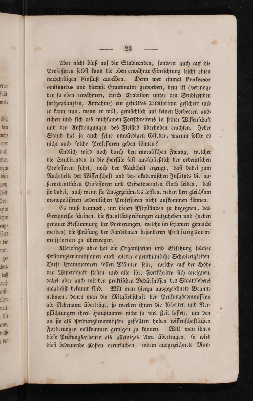 Es muß demnach, um dieſen Mißſtänden zu begegnen, das Geeignetſte ſcheinen, die Facultätsprüfungen aufzuheben und(neben genauer Beſtimmung der Forderungen, welche im Examen gemacht werden) die Prüfung der Candidaten beſonderen Prüfungscom⸗ miſſionen zu übertragen.