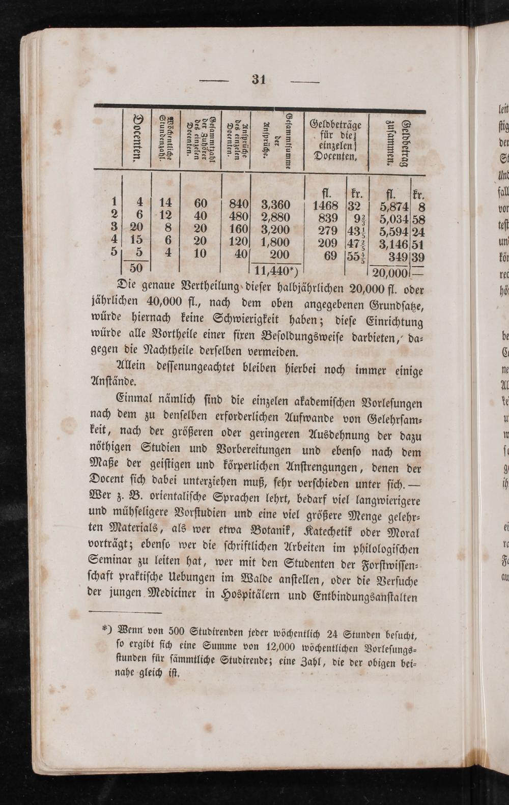 9 9½ g2s5 2 8 ⁸ epbeträge 2. 8 5 2Zzses e, für die 5 =lee einzelen 5 5 225. 555* 8 Docenten, 5 fl.[Fr. fl. kr. 1 4 14 60 840 3,360 1468 32 5,874 8 2 6 12 40 480 2,880 839 93 5,034 58 3 20 8 20 160 3,200 279 43 ½ 5,594 24 4 15 6 20 120 1,800 209 47 ½ 3,146/51 5 5 4 10 40 200 69 55 ¾ 349 39 50 11,440) 20,0005—