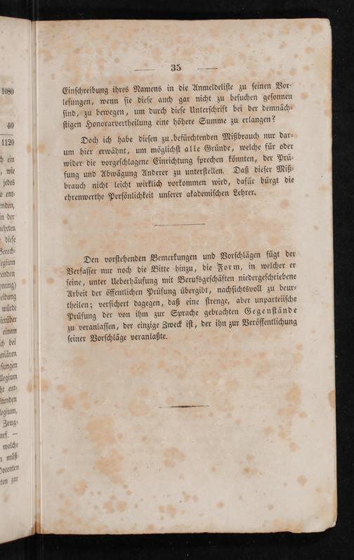 Doch ich habe dieſen zu befürchtenden Mißbrauch nur dar⸗ um hier erwähnt, um möglichſt alle Gründe, welche für oder wider die vorgeſchlagene Einrichtung ſprechen könnten, der Prü⸗ fung und Abwägung Anderer zu unterſtellen. Daß dieſer Miß⸗ brauch nicht leicht wirklich vorkommen wird, dafür bürgt die ehrenwerthe Perſönlichkeit unſerer akademiſchen Lehrer.
