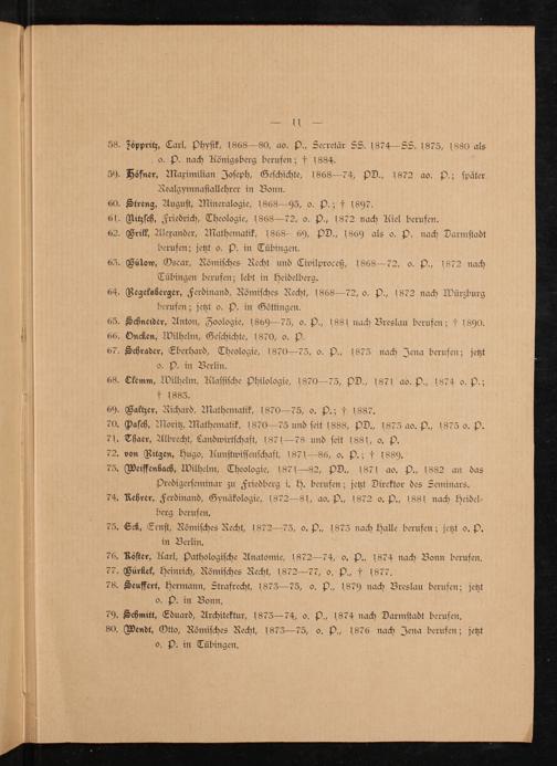 63. Gülow, Oscar, Römiſches Recht und Civilproceß, 1868— 72, o. P., 1872 nach Tübingen berufen; lebt in Heidelberg.