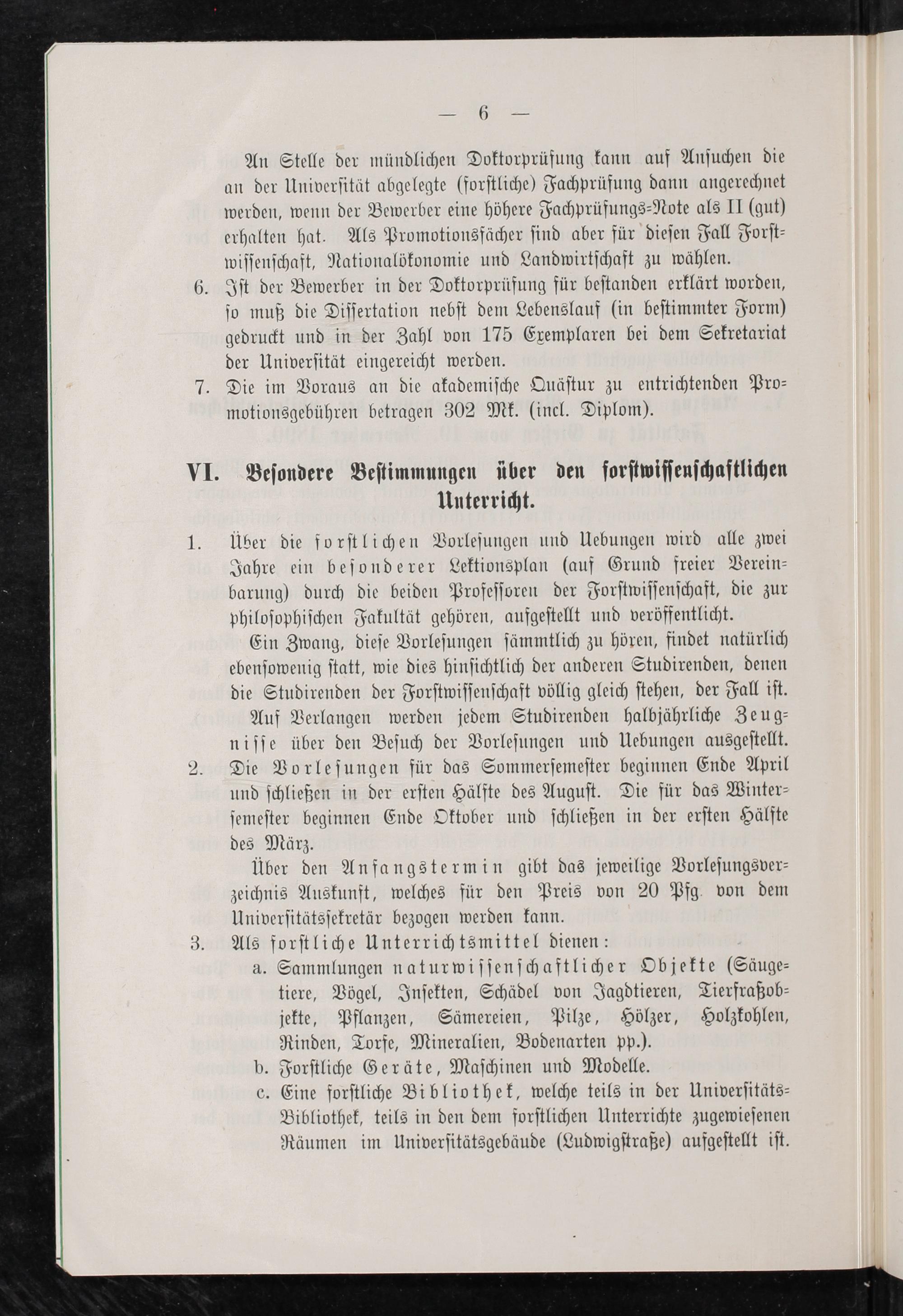 Beſondere Beſtimmungen über den forſtwiſſenſchaftlichen Unterricht.