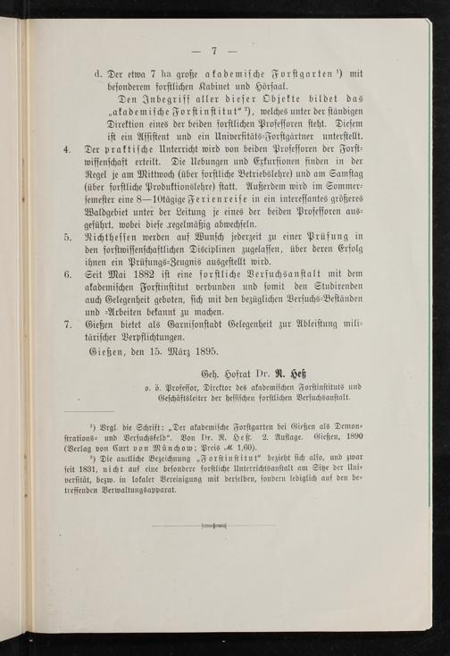 6. Seit Mai 1882 iſt eine forſtliche Verſuchsanſtalt mit dem akademiſchen Forſtinſtitut verbunden und ſomit den Studirenden auch Gelegenheit geboten, ſich mit den bezüglichen Verſuchs⸗Beſtänden und Arbeiten bekannt zu machen.