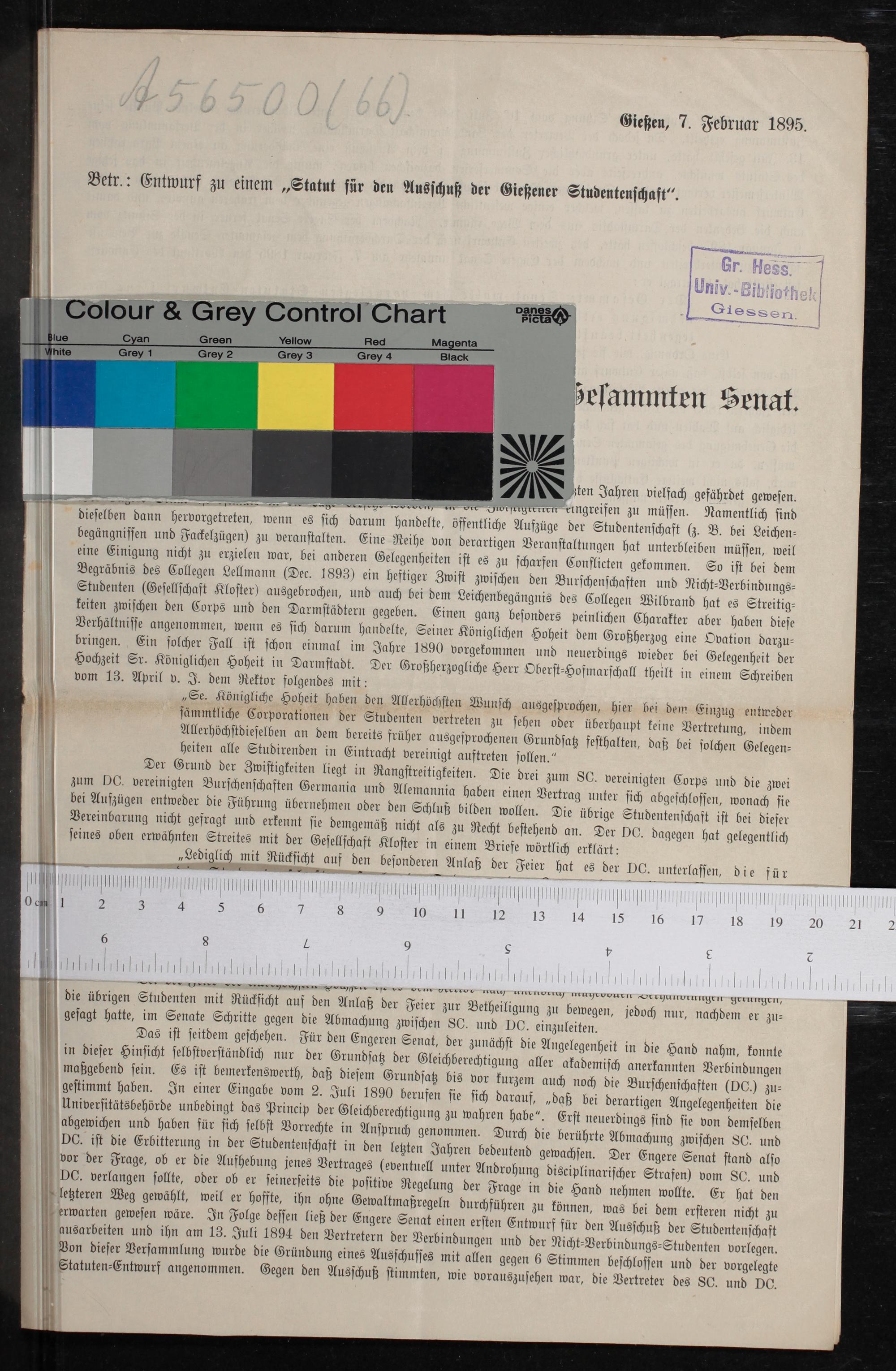 Betr.: Entwurf zu einem„Statut für den Ausſchuß der Gießener Studentenſchaft“.