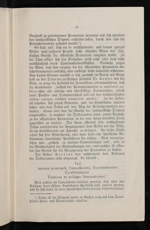 Berghoff zu gemeinſamer Promotion vereinigt und ſich überdies den landgräflichen Dispens ertheilen laſſen, durch den ihm die Privatpromotion geſtattet wurde.“*)