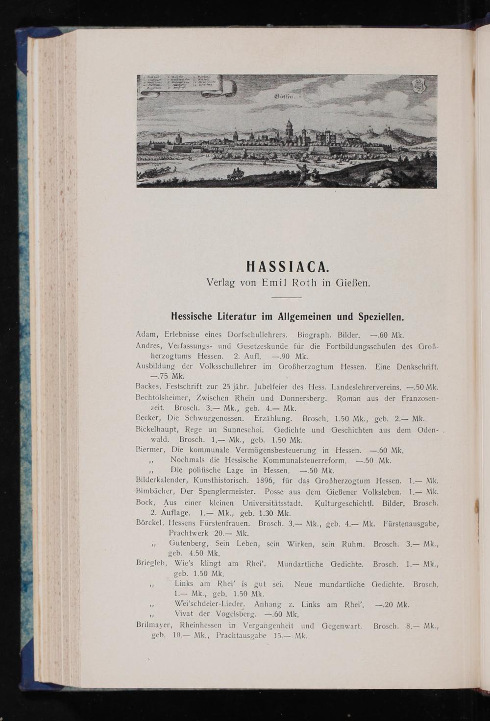 Backes, Festschrift zur 25 jähr. Jubelfeier des Hess. Landeslehrervereins.—.50 Mk.