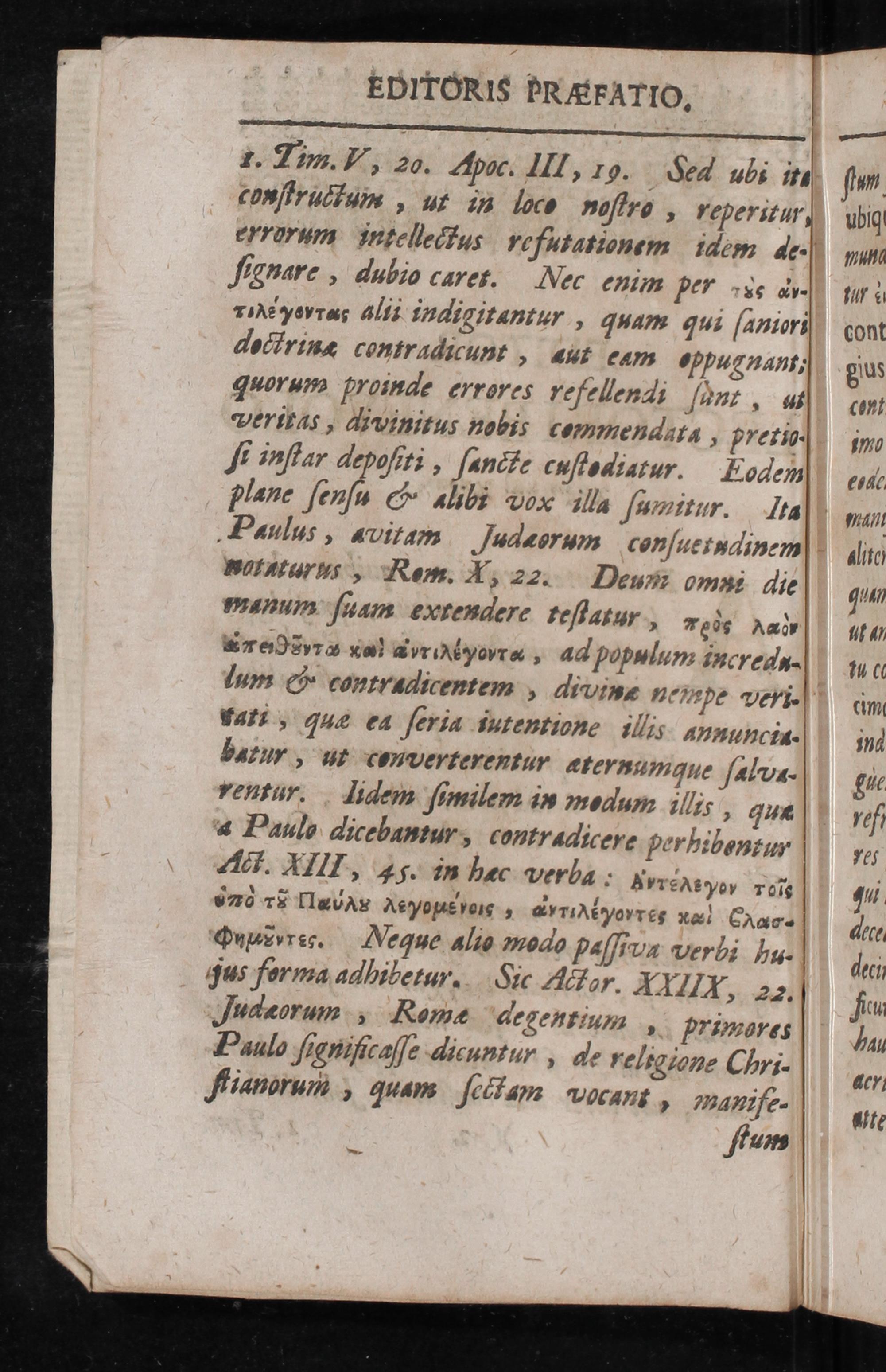 vari, quæ ea ſeria iutentione illis annuncis- batur, ut cenverterentur æternunique ſalva- rentur. ALidem ſimilem iv modum illis„ qus 2 Paulo dicebantur, contradicere perhibentur Act. MIlII, 25. in hæc verba. Sereht ye, rols 62 τ IlauAs Aeyε⁵ o, Arrityoyres aal CAag- Oaurere. Neque alis modo paſſtve verli ha qus forma adbibetur. Sic Altor. IIIIT, 22. Judæorum, Rome aegentium, primores Paulo ſigmiftcaſſe dicuntur, dle religione Chri-