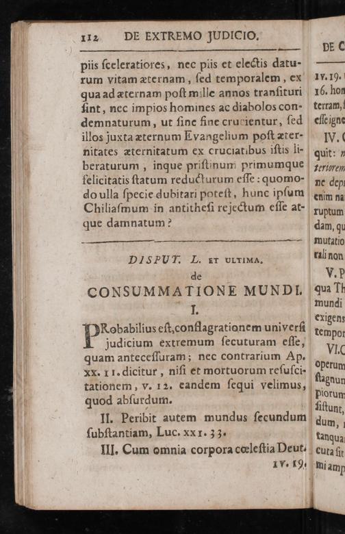 DISPUT. L. Ir ULTIMA. ralinon de V. P CONSUMMATIONE MUNDI. qua TI