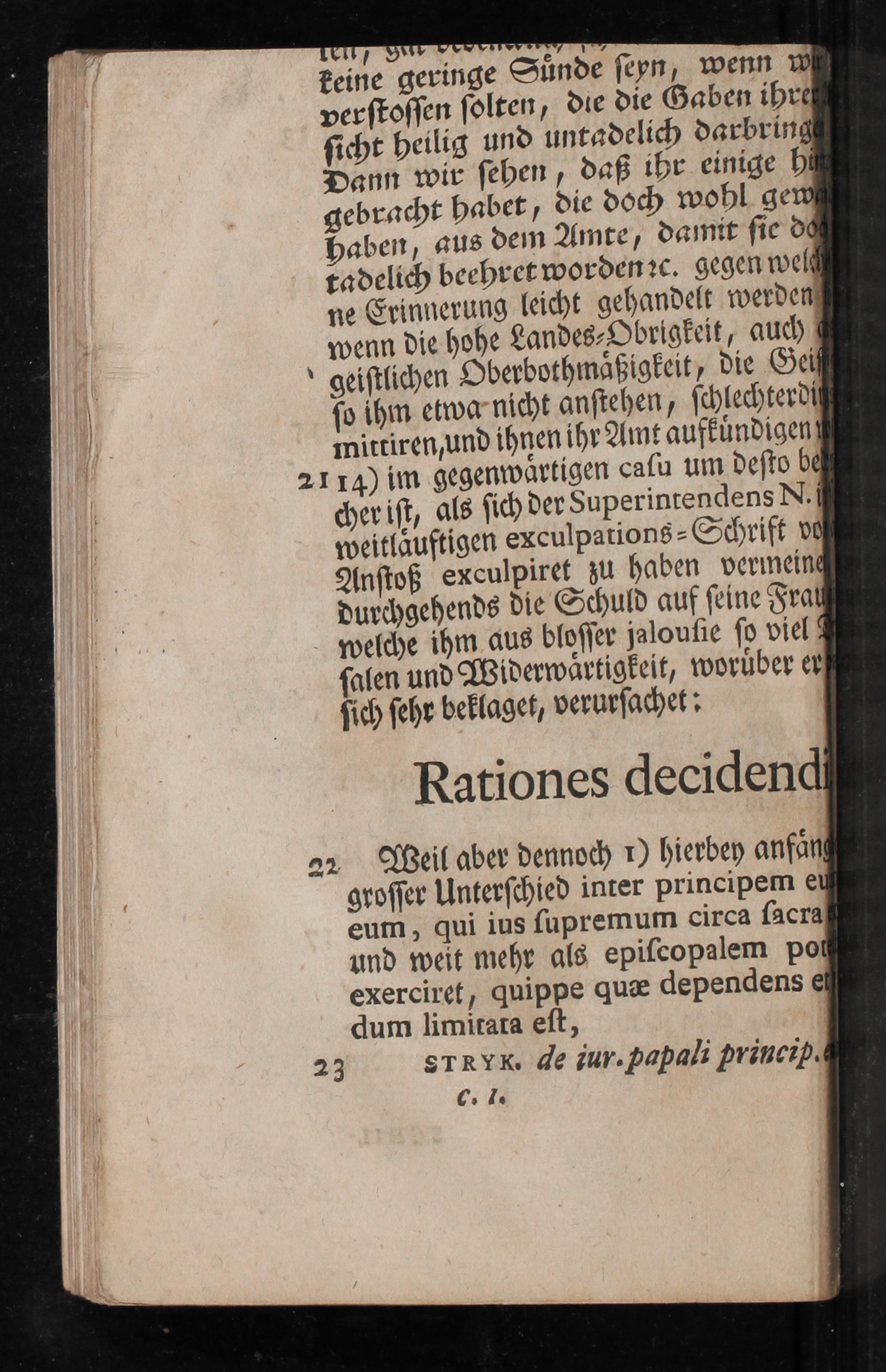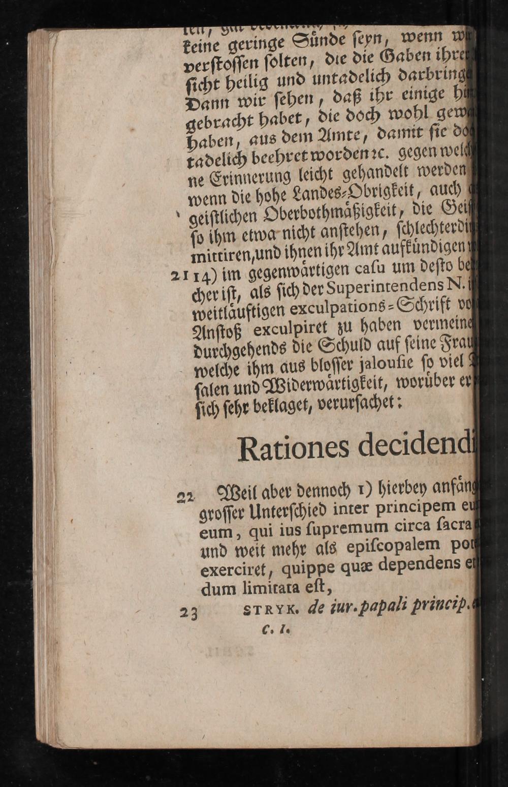 22 Weil aber dennoch 1) hierbey anfaͤng groſſer Unterſchied inter principem e eum, qui ius ſupremum circa ſacra und weit mehr als epiſcopalem po exerciret, quippe quæ dependens e dum limitata eſt,