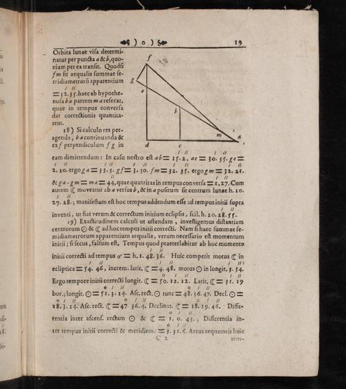 inventi, ut fiat verum& correctum initium eclipſis, ſcil. h. 20. 28. †y. 19) Exactitudinem calculi ut oſtendam, inveſtigemus diſtantiam