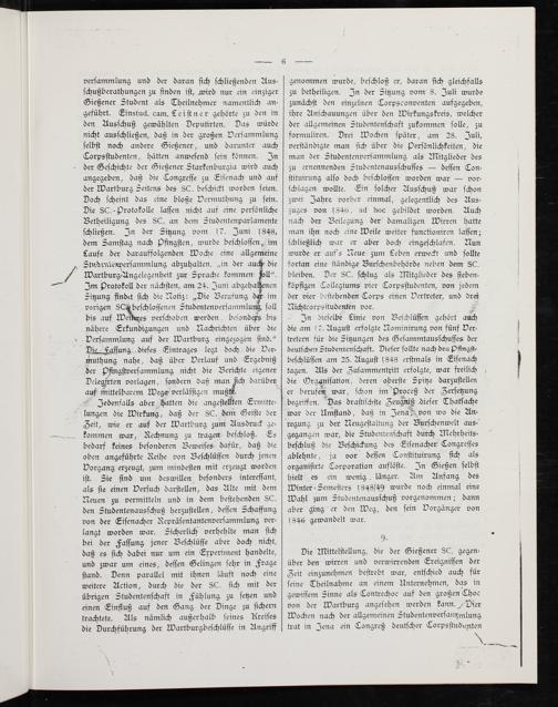 gegangen war, die Studentenſchaft durch Mehrheits⸗ beſchluß die Beſchickung des Eiſenacher Congreſſes ablehnte, ja vor deſſen Conſtituirung ſich als organiſirte Corporation auflöſte. In Gießen ſelbſt hielt es ein wenig länger. Am Anfang des Winter⸗Semeſters 1848/49 wurde noch einmal eine Wahl zum Studentenausſchuß vorgenommen; dann aber ging er den Weg, den ſein Vorgänger von [846 gewandelt war.