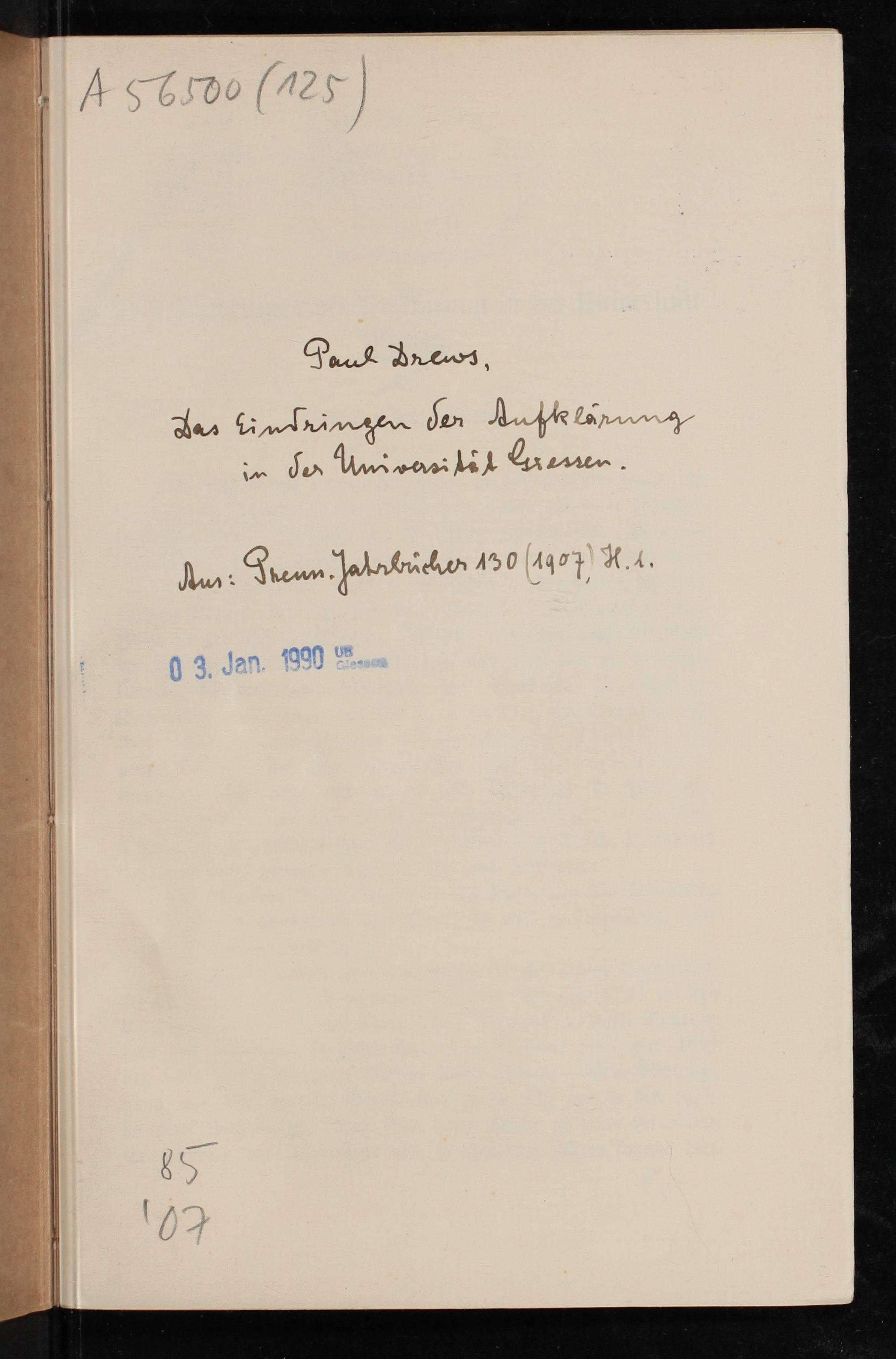 Das Eindringen der Aufklärung in der Universität Gießen / von Professor Drews