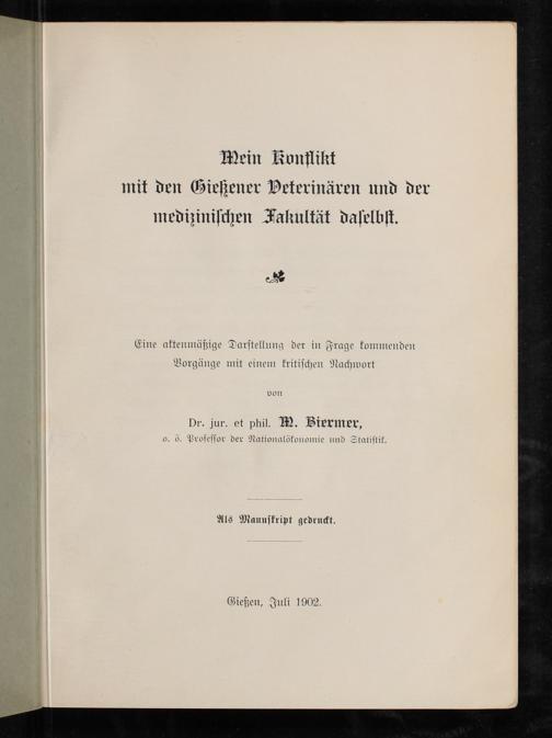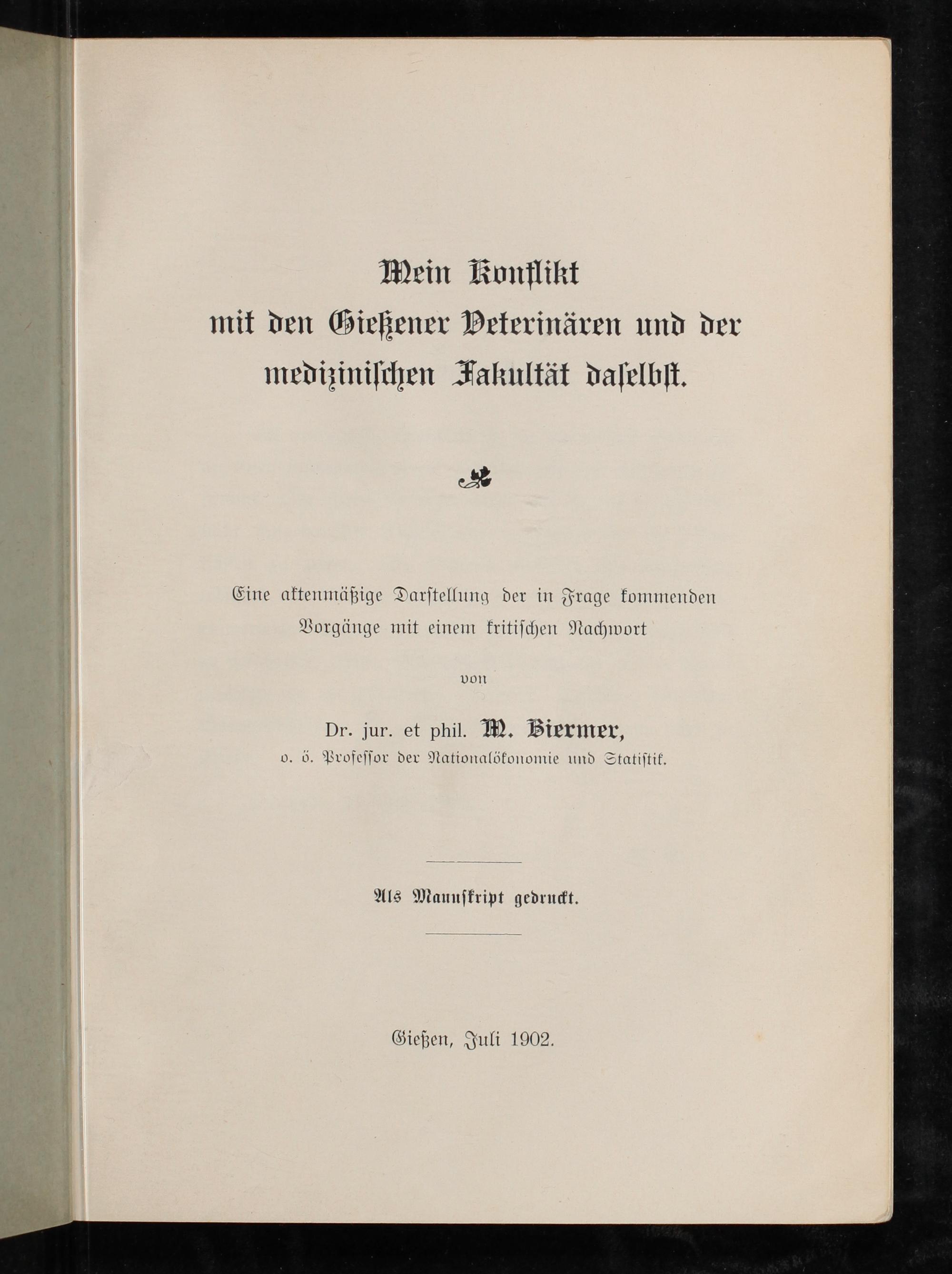 Mein Ronflikt — mit den Gießener PVeterinären und der mediziniſchen Jakultät daſelbſt.