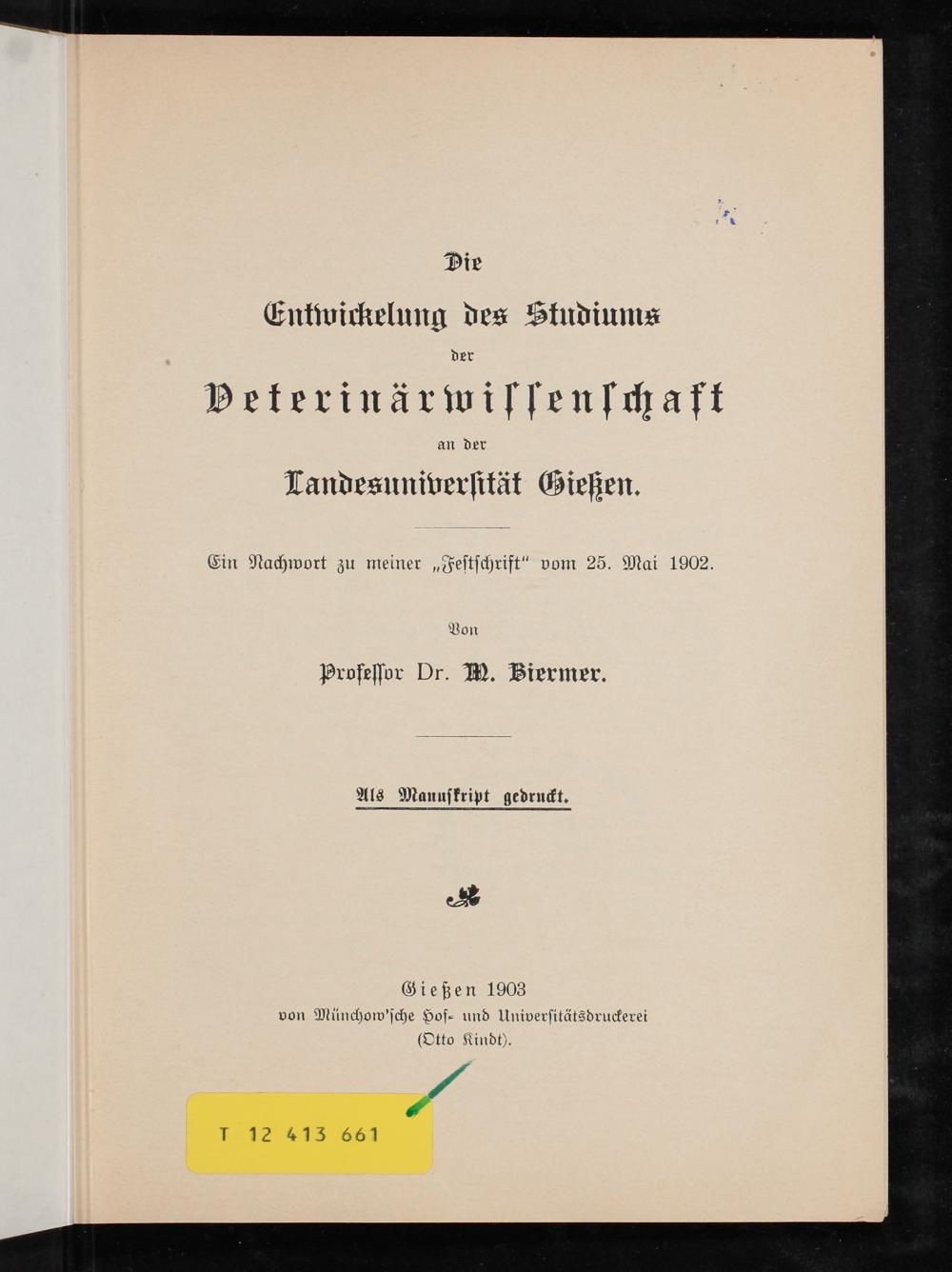 Gießen 1903 von Münchow'ſche Hof⸗ und Univerſitätsdruckerei (Otto Kindt).