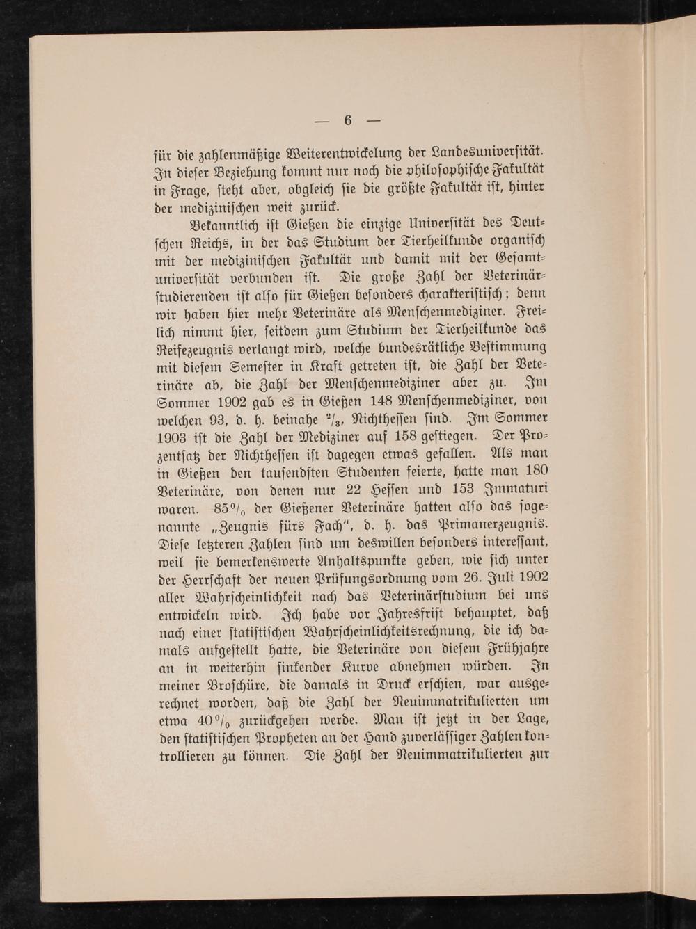 für die zahlenmäßige Weiterentwickelung der Landesuniverſität. In dieſer Beziehung kommt nur noch die philoſophiſche Fakultät in Frage, ſteht aber, obgleich ſie die größte Fakultät iſt, hinter der mediziniſchen weit zurück.