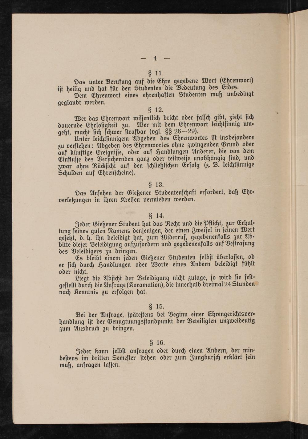 Das unter Berufung auf die Ehre gegebene Wort(Ehrenwort) iſt heilig und hat für den Studenten die Bedeutung des Eides.